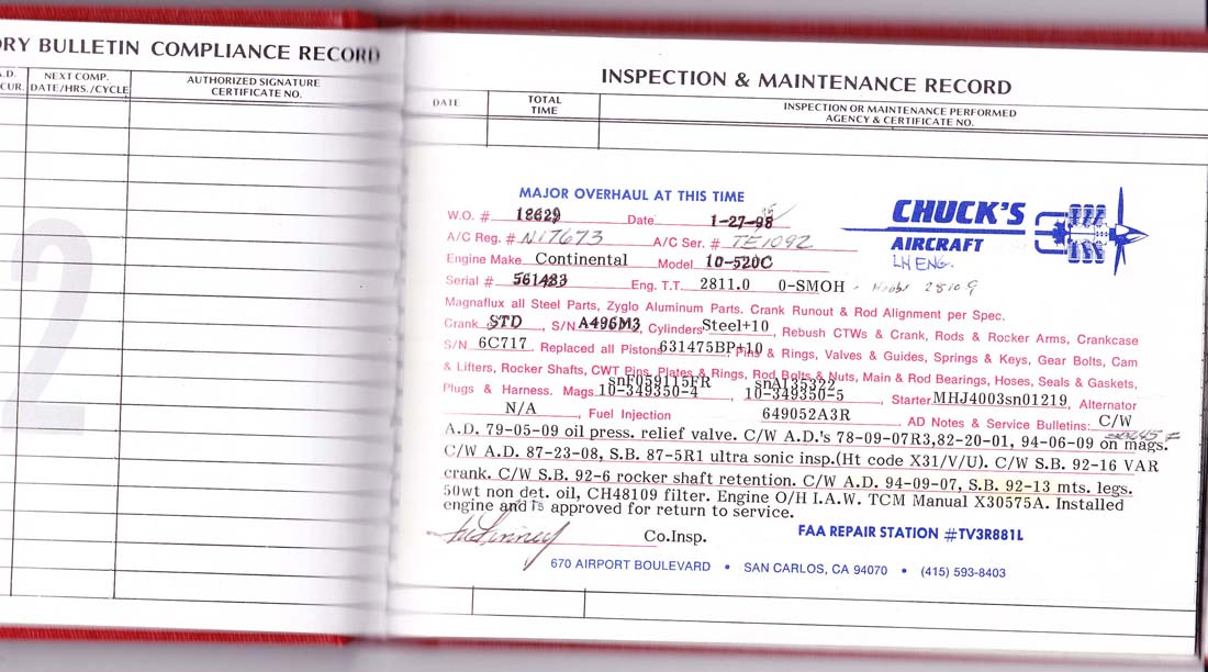 - Continental IO-520C 1700TBO 705/705 SMOH
